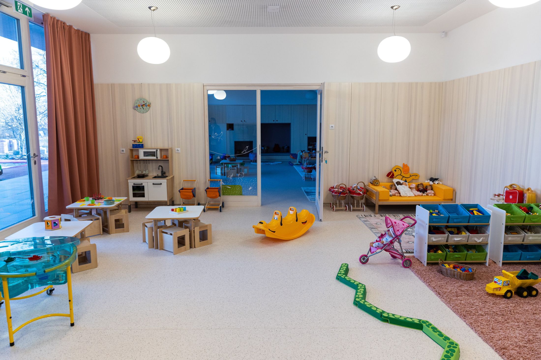 Hangsúlyozta: az épület kialakításába a szülőknek és az itt dolgozó pedagógusoknak is beleszólásuk volt, a végeredmény pedig világos, a nevelési szempontoknak mindenben megfelelő bölcsőde lett, amelyben lehetőség nyílik arra, hogy a gyerekek minél több időt töltsenek a szabadban.
