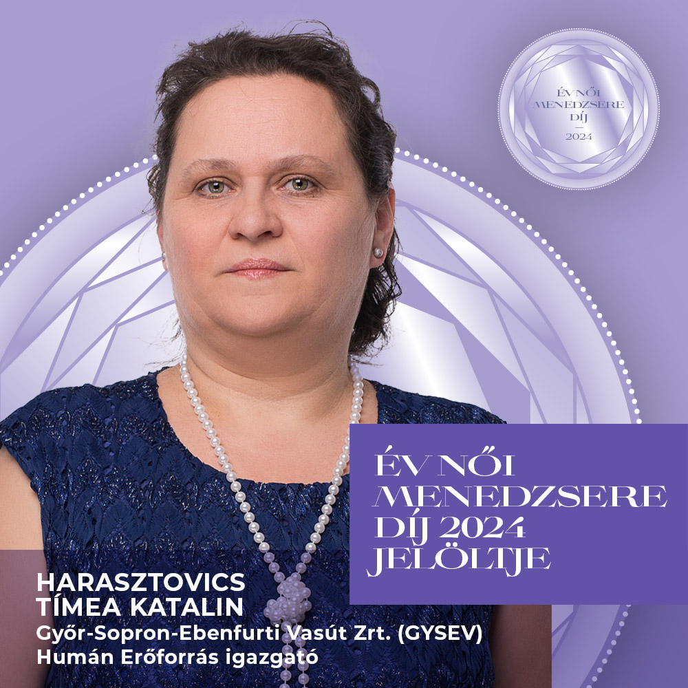 Az ő elkötelezettsége, értékalapú gondolkodása és embersége miatt teljes szívvel és meggyőződéssel javasoljuk Harasztovics Tímea Katalin Humán Erőforrás igazgatót a Családbarát Magyarország Központ Nonprofit Közhasznú Kft. által alapított az „Év Női Menedzsere” díjra.
