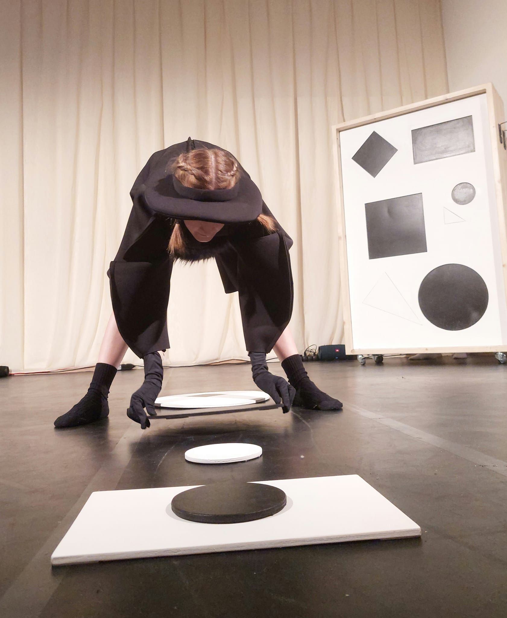 „Vonalak, pontok, pattogó foltok, tekeredik, kerek, gurul, lebeg! Nézem, megérintem, ujjammal kísérem. Mozog! Látom! Megbirizgálom! – Fekete és Fehér, kerek és szögletes, ritmus és tánc játéka klasszikus zeneművekkel” – idézem az előadás ismertetőjét Petrának, aki rögtön felvázolja, mire számíthat a közönség.