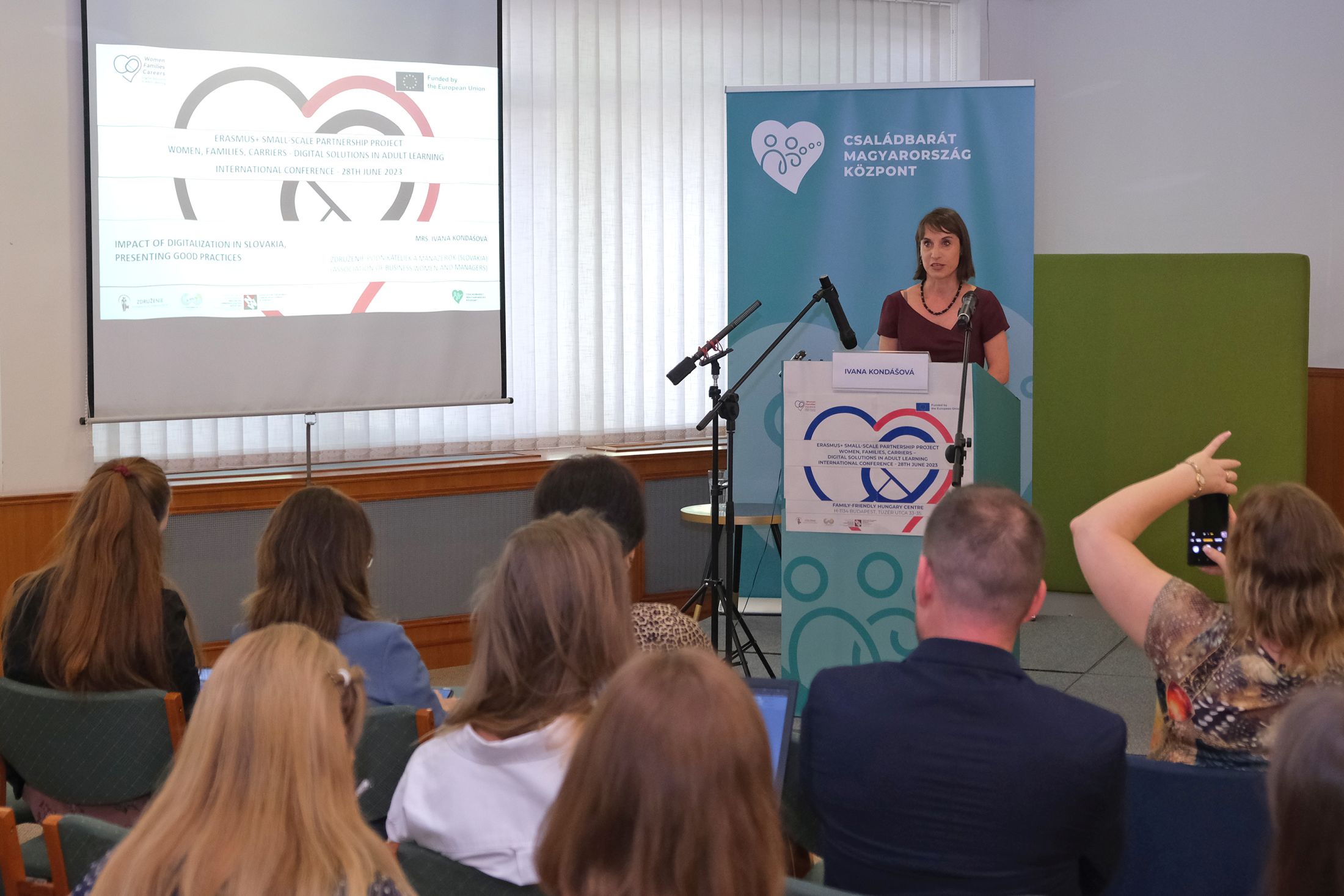 A Családbarát Magyarország Központ és a Magyar Női Karrierfejlesztési Szövetség (MNKSZ) cseh és szlovák civil szervezetek részvételével közösen szervezett angol nyelvű nemzetközi konferenciát június 28-án a Women, Families, Careers - Digital solutions in adult learning (Nők, család, karrier – digitális megoldások a felnőtt tanulásban) projekt keretében.