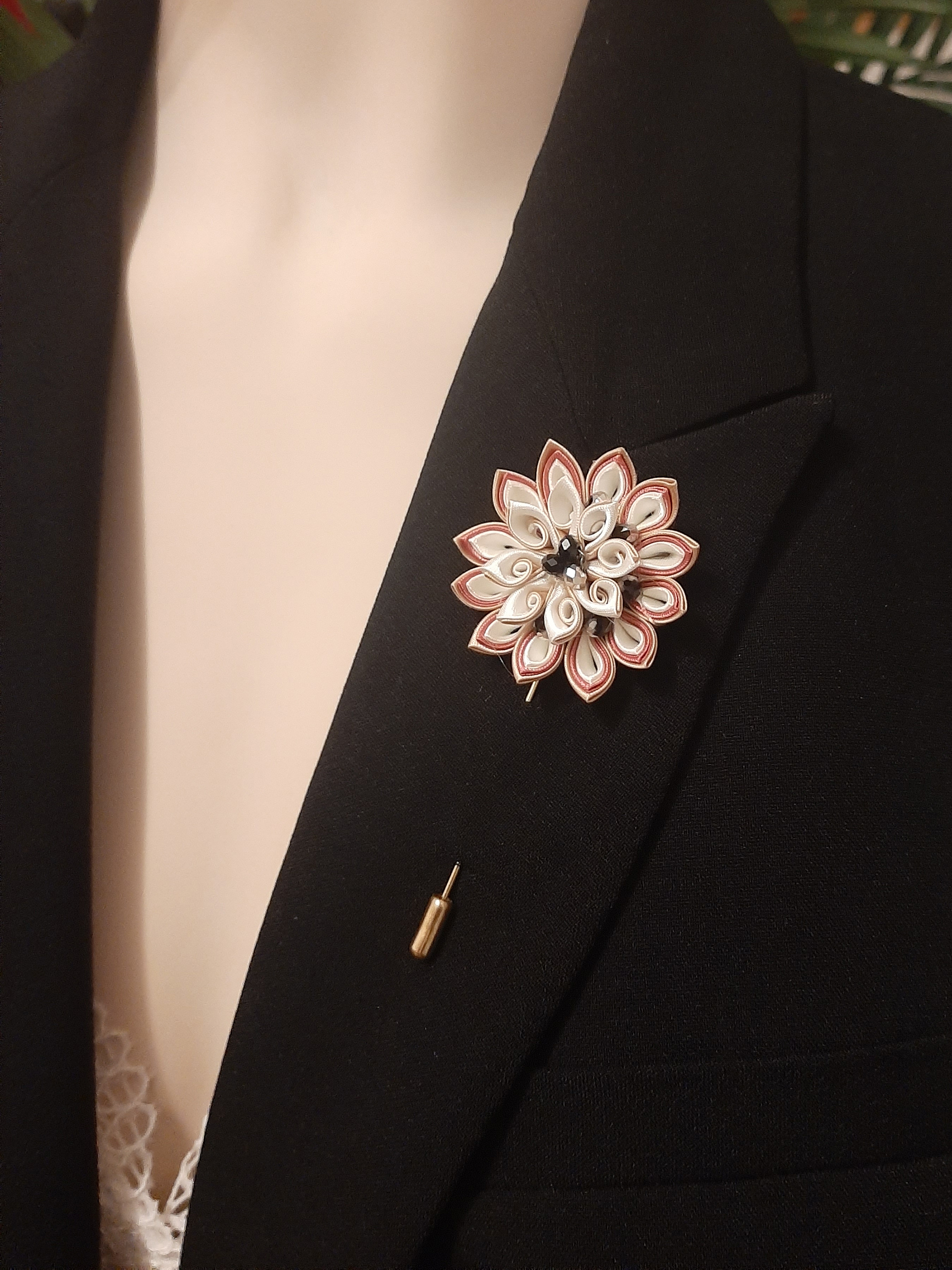 Meg még sok minden mást is. Ha a helyzet vagy a „megrendelő” úgy kívánja, Kata örömmel hajtogat alkalmi kontydíszt, amely viselhető fésűre, csipeszes hajcsatra vagy hajpántra rögzítve. A covid idején pedig az aktuális igényeket szem előtt tartva, alkalmi ruhákhoz kiegészítőként alkalmi szájmaszk díszítéseket készített organza szalagból.